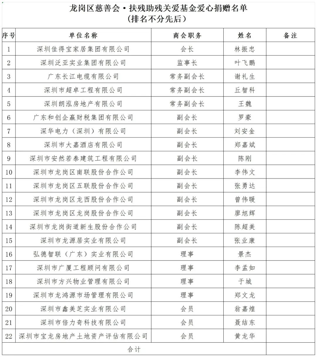 下一步,龙岗街道工商联(商会)将继续弘扬扶危济困、乐善好施的中华民族传统美德,引导会员企业自觉投身慈善事业,争当回报社会的典范。希望通过开展此类活动,呼吁社会各界爱心企业、人士对残疾人群体的关注和关心,积极参与到扶残助残公益事业中来,奉献一份力量,给予更多关怀,努力营造全社会共同关心关爱残疾人、支持残疾人事业的良好氛围,共同为残疾人朋友创造更好的生活环境。