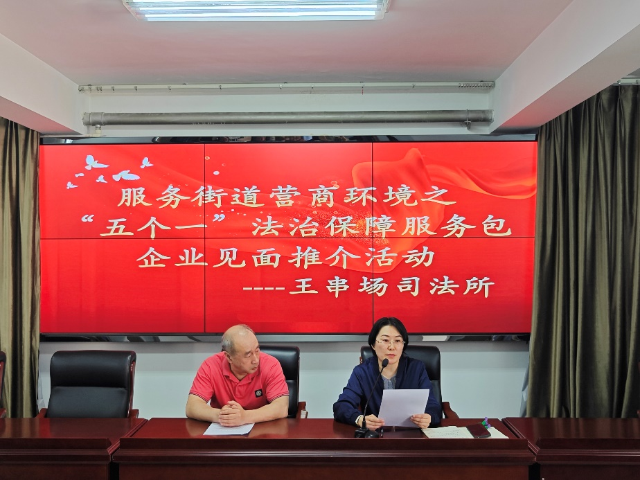 王串场街司法所所长杨雪燕介绍了今年以来,司法所按照“一街五所”工作部署,积极履行法治保障工作职责,创新推出的法律服务、公证服务、“五个一”法治保障服务等多形式助企服务项目。天津君辉律师事务所、河北公证处工作人员现场开展了法律宣讲。