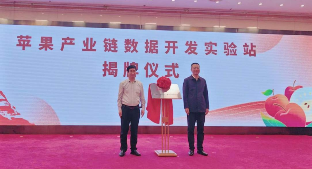 延安市果业中心主任、延安苹果研究院常务副院长路树国和中国经济信息社指数事业部主任曹占忠共同揭牌苹果产业链数据开发实验站,该实验站由新华指数研究院和延安苹果研究院共同牵头成立,旨在聚焦数字时代苹果产业发展路径,助力苹果全产业链联动发展,以数据要素推动现代果业乘“数”而上。