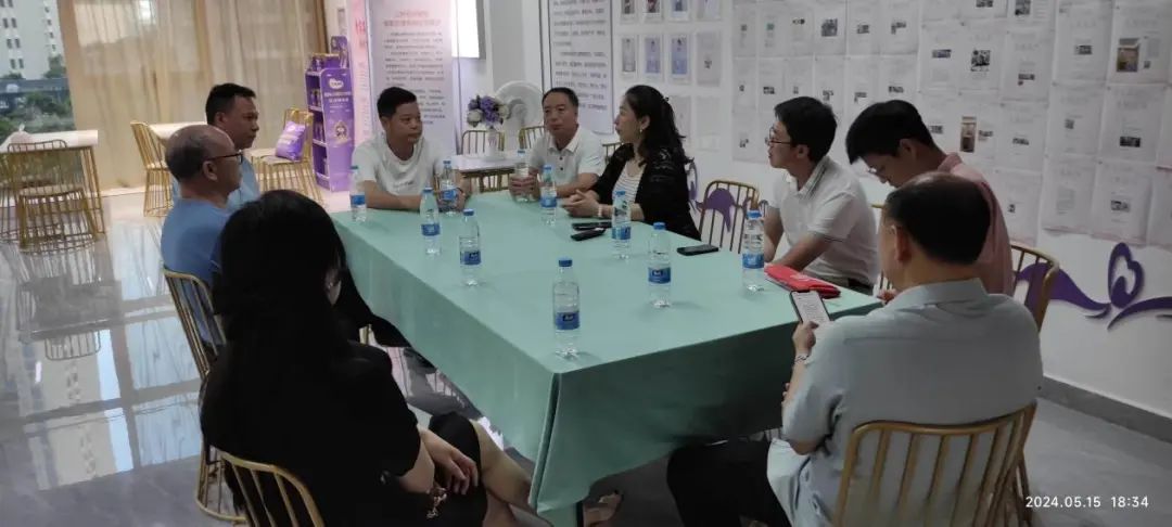 最后,走访组来到爱尚僖玥母婴护理有限公司(月子中心),商会温赣群会长闻讯一起参加走访。该公司是商会理事詹美芸创建的一家从事母婴护理、产后恢复、月嫂外派的母婴护理机构,采用现代坐月子与传统月子文化相结合,从孕前、孕中和产后,提供全方位的月子服务。在詹美芸的陪同下,小组成员们参观了母婴护理场所,并向走访组成员们详细介绍了该公司的经营理念、服务模式以及取得的业绩。温赣群会长、温中胜副会长对詹美芸的创新精神和务实作风表示赞赏,并希望她能够继续发挥自身优势,为更多母婴家庭提供优质的护理服务。