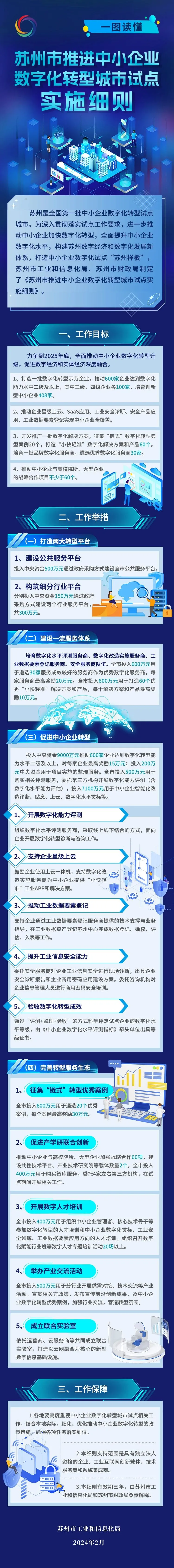 苏州市工业和信息化局信息化推进处处长汪晓亮在对接会上向全市参会中小企业和服务商解读了《苏州市推进中小企业数字化转型城市试点实施细则》。苏州将着力打造两大转型平台,建设一流服务体系,促进中小企业数字化转型,完善转型服务生态;推动中小企业开展数字化能力评测、星级上云、工业数据要素登记、工业信息安全能力提升、数字化转型成效验收等工作,打造一批数字化转型示范企业。