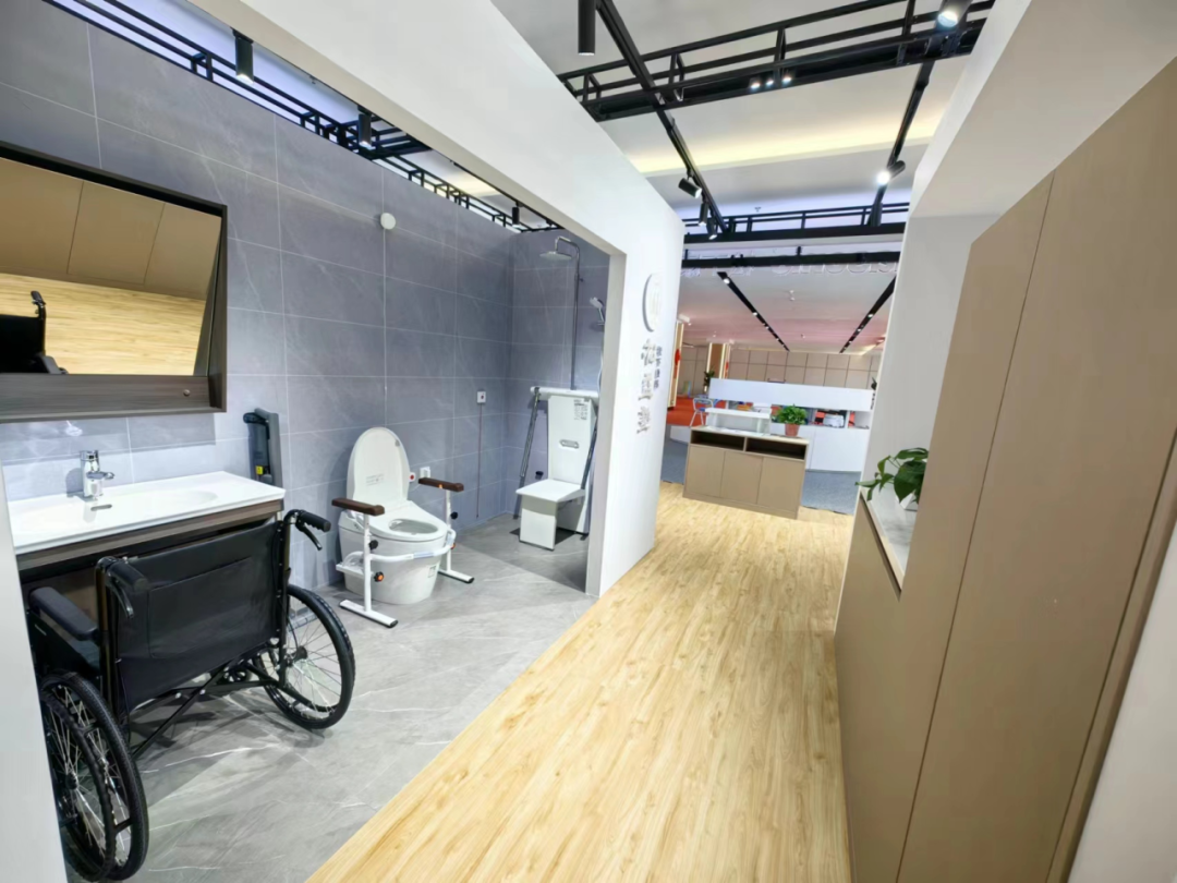 家具展示区则展出了一系列符合老年人人体工程学原理的适老化家具,包括智能调节高度的床椅、带有支撑扶手的坐椅、洁具等,这些家具的设计旨在帮助老年人更加轻松地完成日常生活中的各种动作,减少摔倒风险,同时提供足够的舒适和支持。