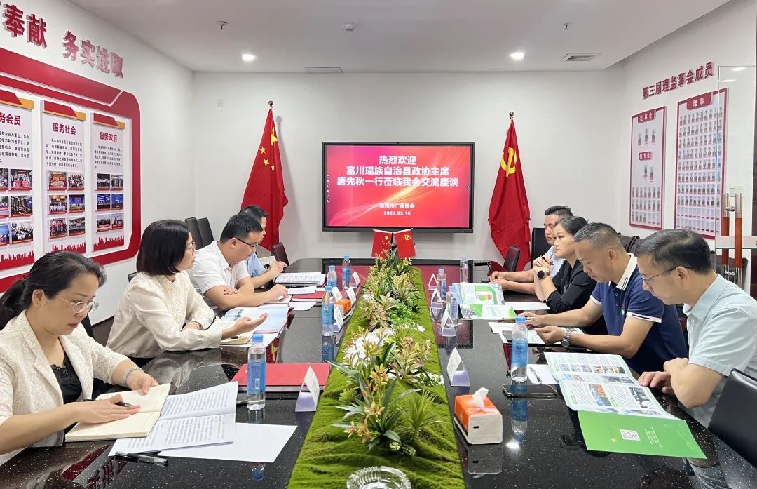 5月16日上午,贺州市富川瑶族自治县政协主席唐先秋一行前来商会进行招商对接座谈。我商会副会长甘国宣、理事钟春标、秘书长张琳参加座谈。