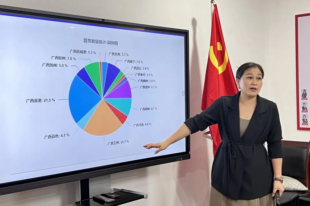 我商会秘书长张琳向贺州市富川瑶族自治县来访一行介绍商会的基本情况。商会以“服务会员,服务社会,服务政府”为办会宗旨,以党建促会建,在近年来以此为目标和方向开展大家喜闻乐见的活动。