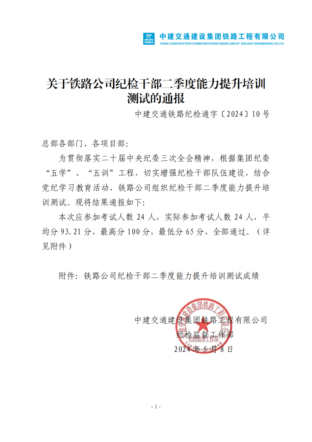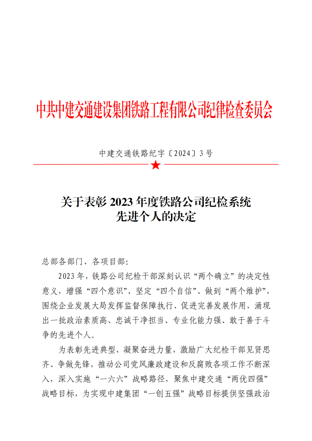 下一步,中建交通铁路公司纪委将不断扛牢监督责任使命,以纪偕行,努力淬炼“五型”团队,不断推进纪检监督工作高质量发展。