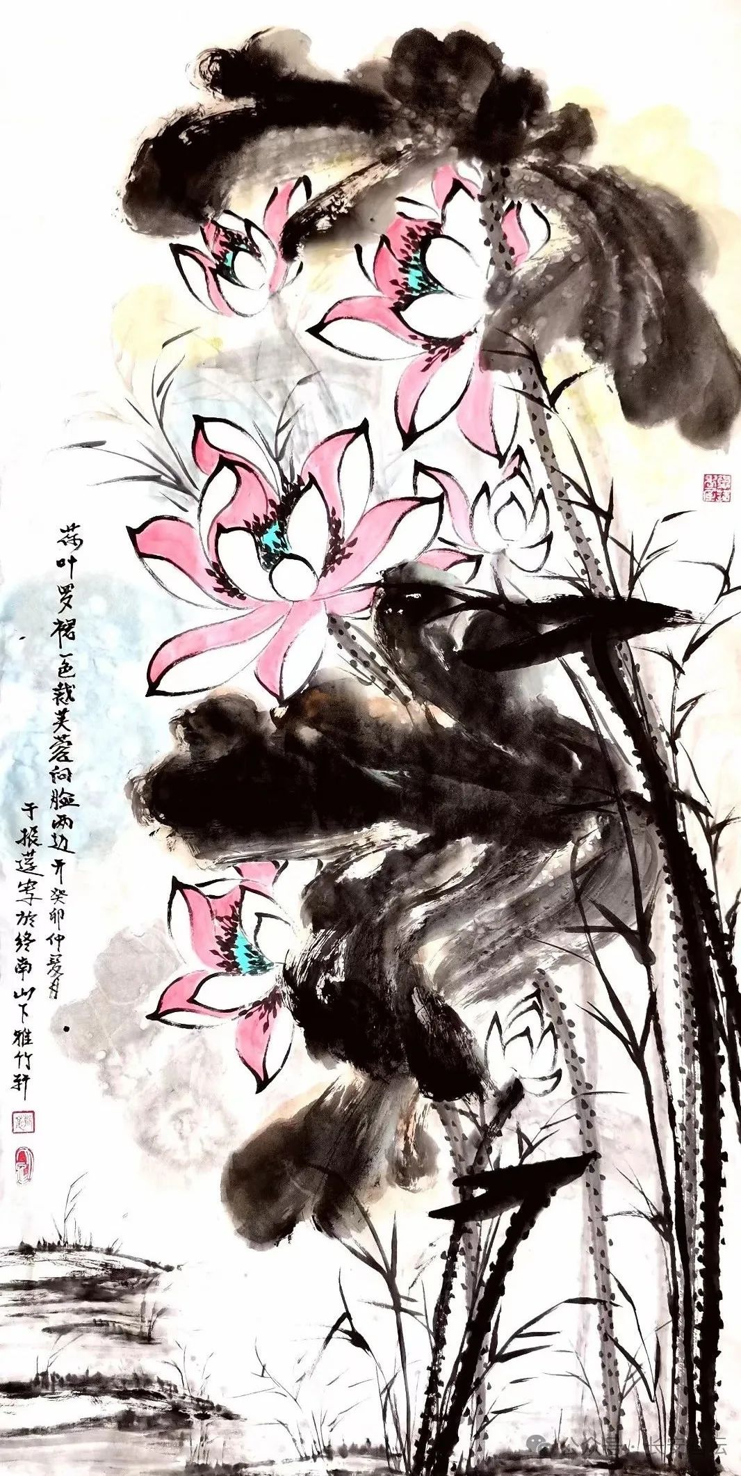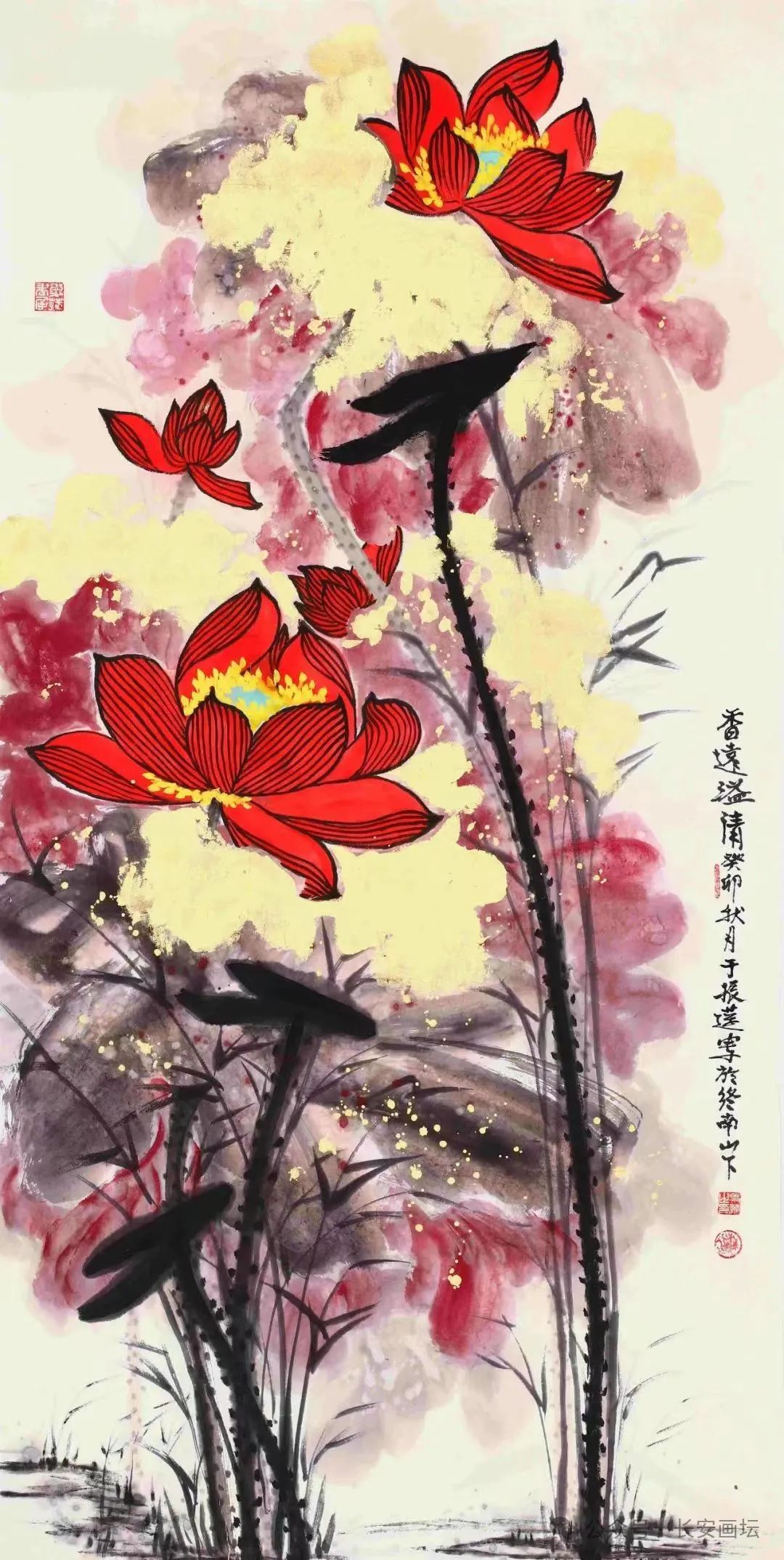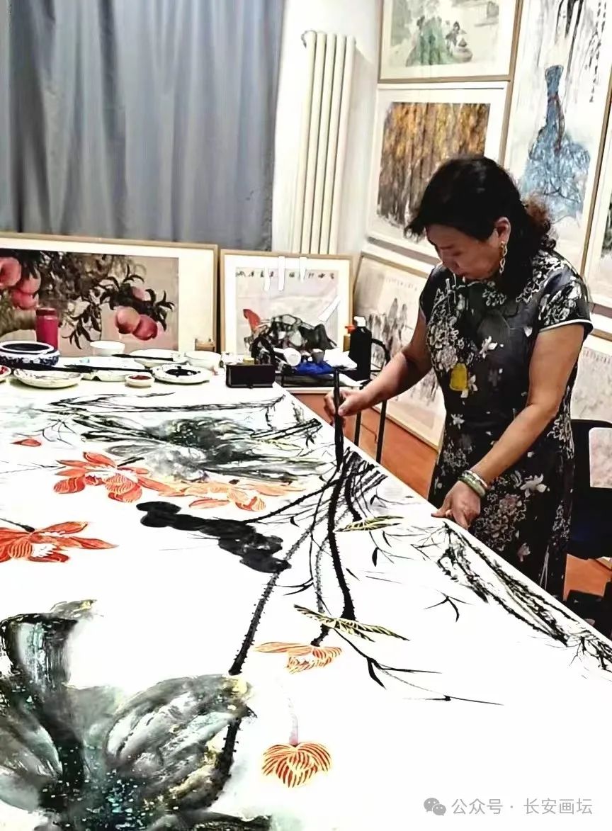于振莲 1950年出生于山东文登,青年时代就酷爱绘画,上世纪七十年代末,师承长安画派名家何海霞先生,并成为入室弟子,专攻仕女、山水画法,尤长画荷。于振莲在四十多年绘画生涯中,以张大千先生、何海霞先生为宗师,研习绘画艺术。并追随恩公多年,在其人格魅力和文化氛围的熏陶下,耳濡目染,聆听教诲和手把手的教导,深得其绘画真谛,进而逐渐形成格调新颖、笔墨大气、秀润飘逸、苍劲有力的绘画艺术风格。她在学习“大风堂”画荷技法的基础上又有创新,被长安画坛誉为“大风堂”传人。她的作品多次参加全国和省、市画展,并屡屡获奖,不少画作被博物馆、纪念馆及名人士收藏。于振莲现为中国文化部艺术交流中心理事;国家一级美术师;陕西省美术家协会会员;中国三百书画院陕西省分院副院长,中国香港美朮家协会常务理事等。