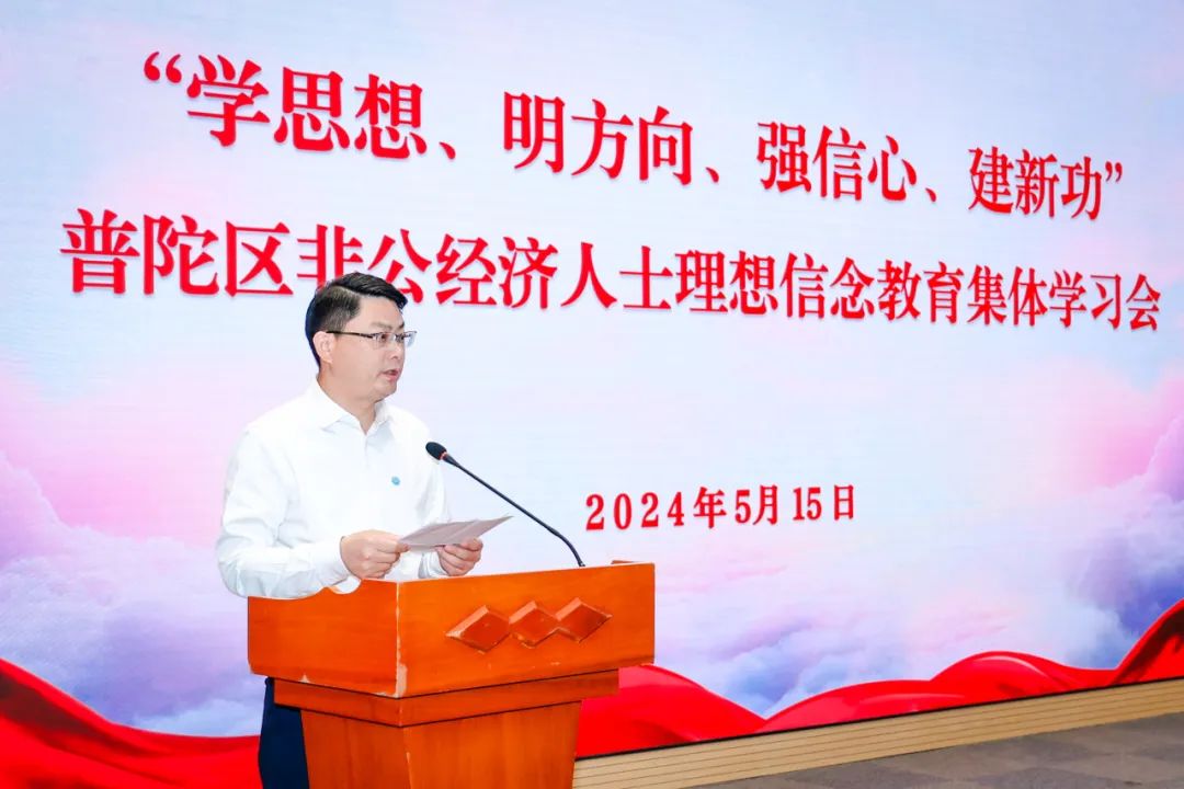5月15日下午,一场别开生面的集体学习会在普陀区工商联举行,此次学习会聚焦非公经济人士理想信念教育,旨在通过“学思想、明方向、强信心、建新功”,进一步凝聚民营企业家的共识和力量。学习会由上海市工商联党组成员、副主席施登定作专题授课,来自全区130余名民营企业家代表出席。