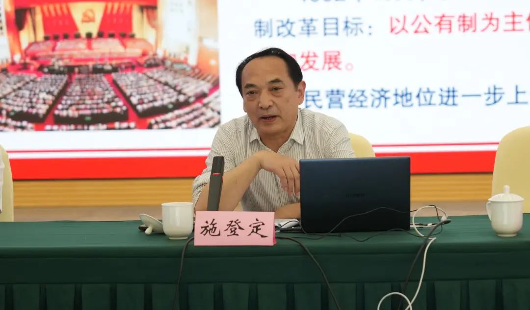 施登定以《把握重大历史机遇 促进上海民营经济发展壮大》为题,从我国民营经济发展正面临新的重大历史机遇、准确把握促进民营经济发展壮大的根本遵循、上海民营经济发展阶段性特征分析和扛起促进上海民营经济发展壮大的时代担当四方面进行了深入浅出的讲解,结合当前经济形势和民营企业发展实际,分析了当前民营企业面临的机遇和挑战,极大提振了企业家们立足上海、扎根普陀做大做强的信心。