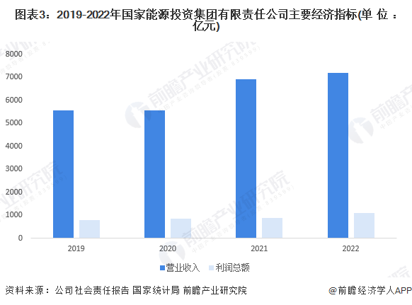 2019-2022年,国家能源集团营业收入和利润总额均呈现逐年增长趋势,2022年营业收入达到7203亿元,利润总额达到1100亿元。