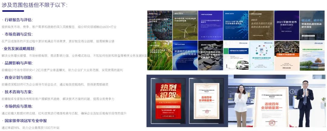 前瞻产业研究院于1998年在北京清华园成立。26年来,前瞻作为国内唯一国际院士领衔的民营智库,坚持两翼一体的可持续发展战略,以“宏观研究+技术洞察+自研大数据”为可持续发展先行之翼,以“智库专家+平台资源"为落地性发展后固之翼,致力于为政府、企业、科研院所等单位提供一体化的产业发展咨询服务。