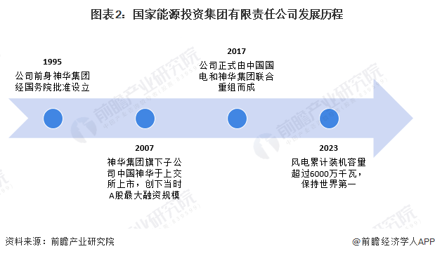 国家能源投资集团有限责任公司,简称国家能源集团,其前身为神华集团有限责任公司。1995年,神华集团有限责任公司经国务院批准设立,是中共中央直管的53家国有重要骨干企业之一。2007年,神华集团旗下子公司中国神华完成A股上市,成为当时A股融资规模最大的IPO事件。2017年11月28日,经党中央、国务院批准,国家能源集团由中国国电与神华集团联合重组而成,正式挂牌成立。截至2023年年底,国家能源集团风电装机突破6000万千瓦,保持世界第一。