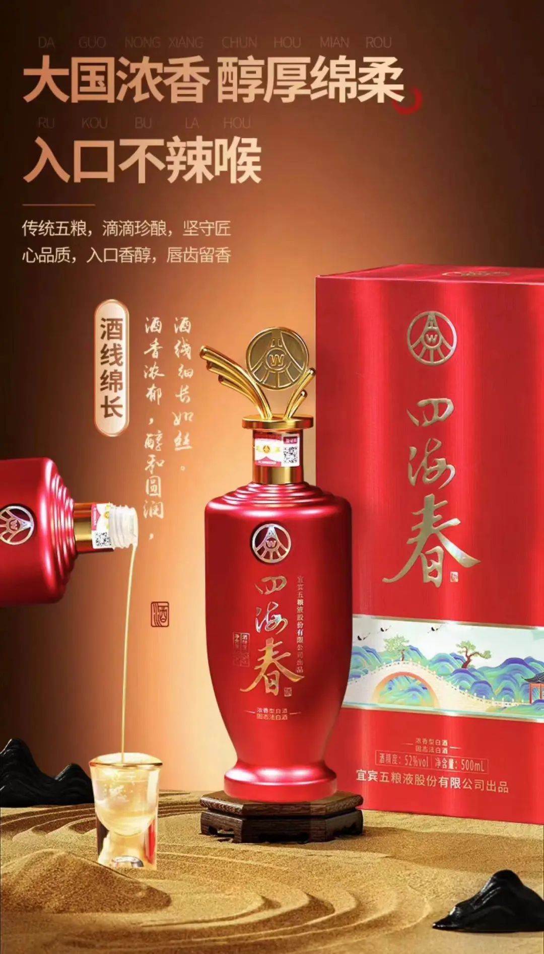 五粮液四海春酒,集合了公司多方优质资源,品牌大、产品实力强,更具竞争优势,自出品上市后销量攀升曲线非常可观。