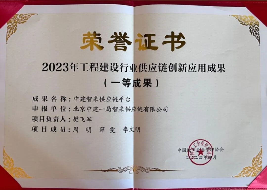 近日,2023年工程建设行业供应链创新应用优秀成果名单揭晓,智采公司凭借其数智化综合实力和卓越创新实践,荣获一等成果奖。