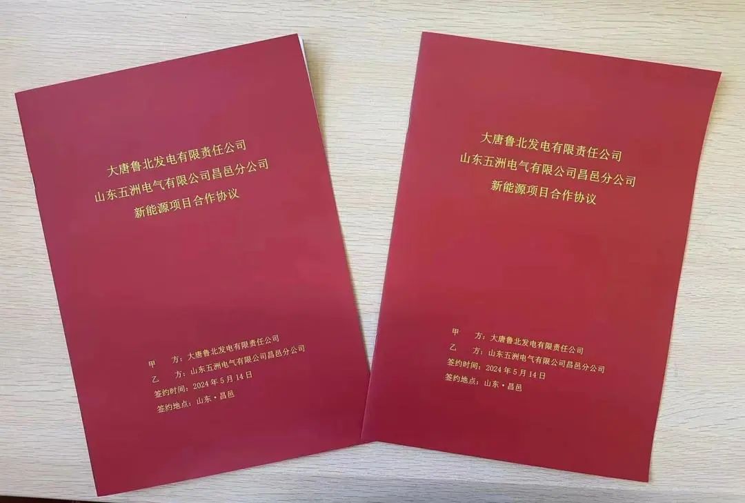 5月14日,大唐鲁北发电有限责任公司与山东五洲电气有限公司昌邑分公司签订新能源项目合作协议。