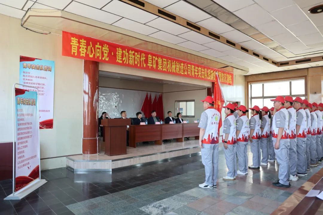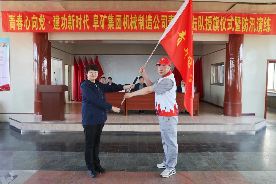 5月15日,集团公司团委为机械制造公司青年突击队授旗。集团公司群团工作部副部长杨怀军、团委书记孙岩、机械制造公司党委书记夏忠东等领导出席授旗仪式。