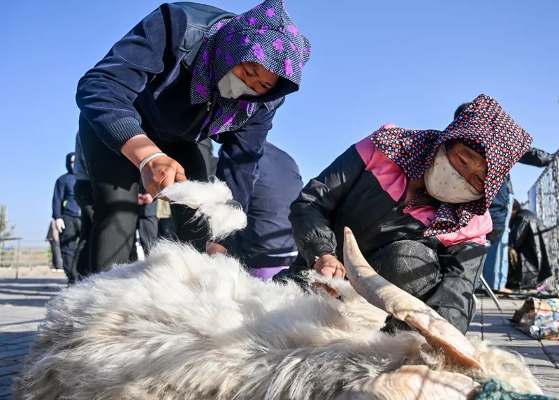 羊毛纺织里面还有一个特殊的原料,那就是羊绒。羊绒主要是山羊粗毛根部细软的绒毛,能起到御寒保温的作用。牧民提取羊绒要用羊绒刷。