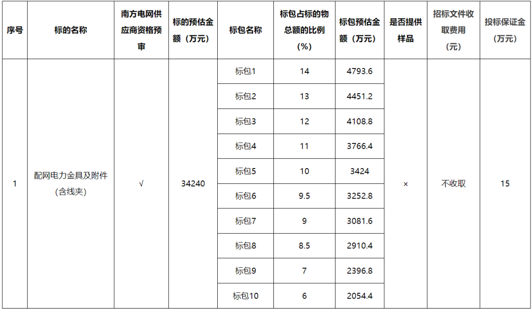 2.南方电网供应商资格预审:“配网电力金具及附件(含线夹)”按“电力金具及附件”的资格预审结果执行
