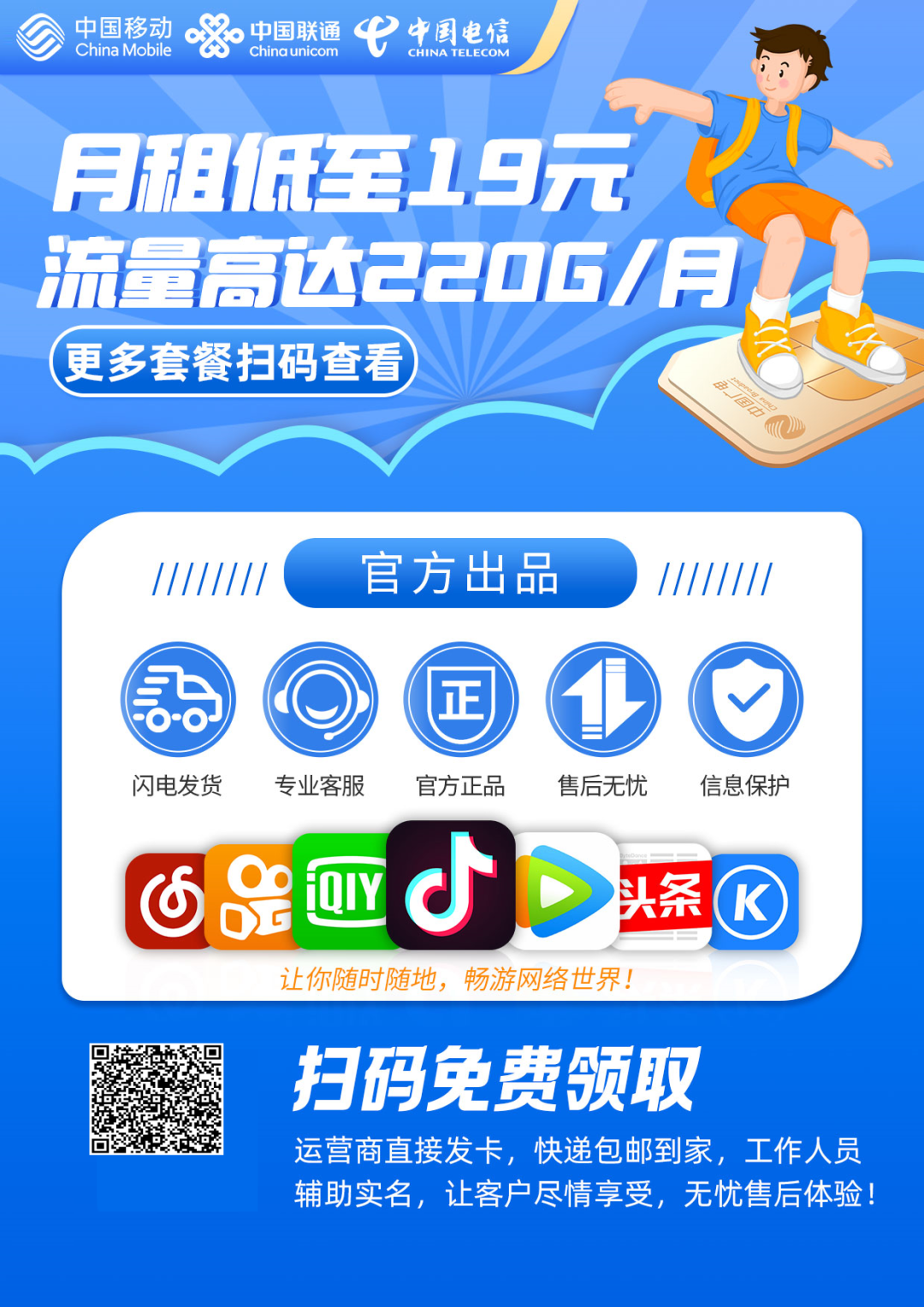 需要流量卡的朋友识别下方二维码免费领取