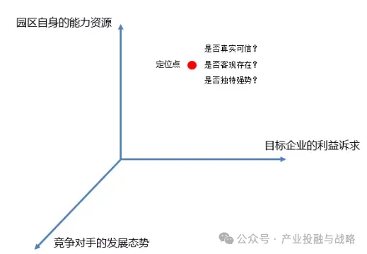 按照三大参照系、三大评价维度的模型分析确定。三大参照系:标准化工业园区自身的能力资源、目标企业的利益诉求和竞争对手的发展态势;三大评价维度:真实可信、客观存在、独特强势。