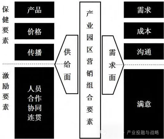 标准化工业园区“3PC + ”营销组合要素,即产品-需求(Product-Consumer’s need)、价格-成本(Price-Cost)、传播-沟通(propagate-Communication)、人员(People)、合作(Cooperation)、协同(Coordination)和连贯(Consistency),以此表征标准化工业园区品牌定位点的选择合集。