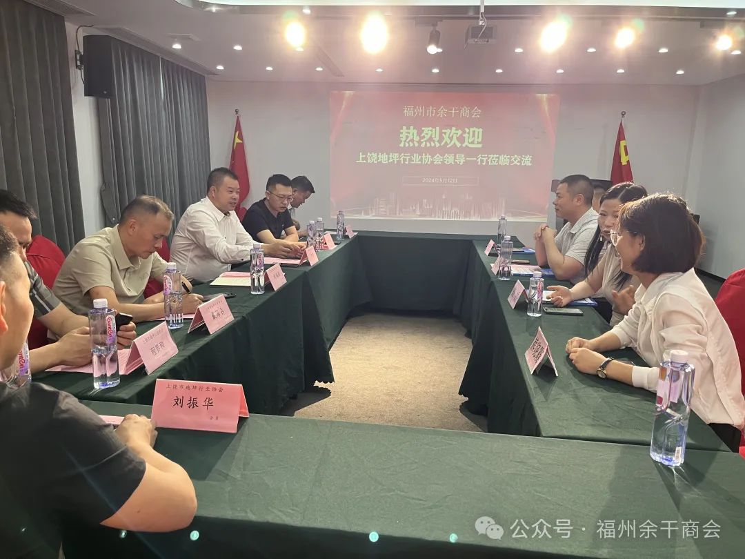 2024年5月12日上午,上饶市地坪行业协会会长朱鸿,党支部书记兼秘书长刘福镇,常务副会长陆军话、戴海占、程界和等一行莅临我会参观交流。福州市余干商会会长朱振厅,党支部书记曹建双,秘书长刘娇,副会长熊小霞等热情接待,余干县梅港乡常务副乡长朱平斌应邀参加了本次活动。