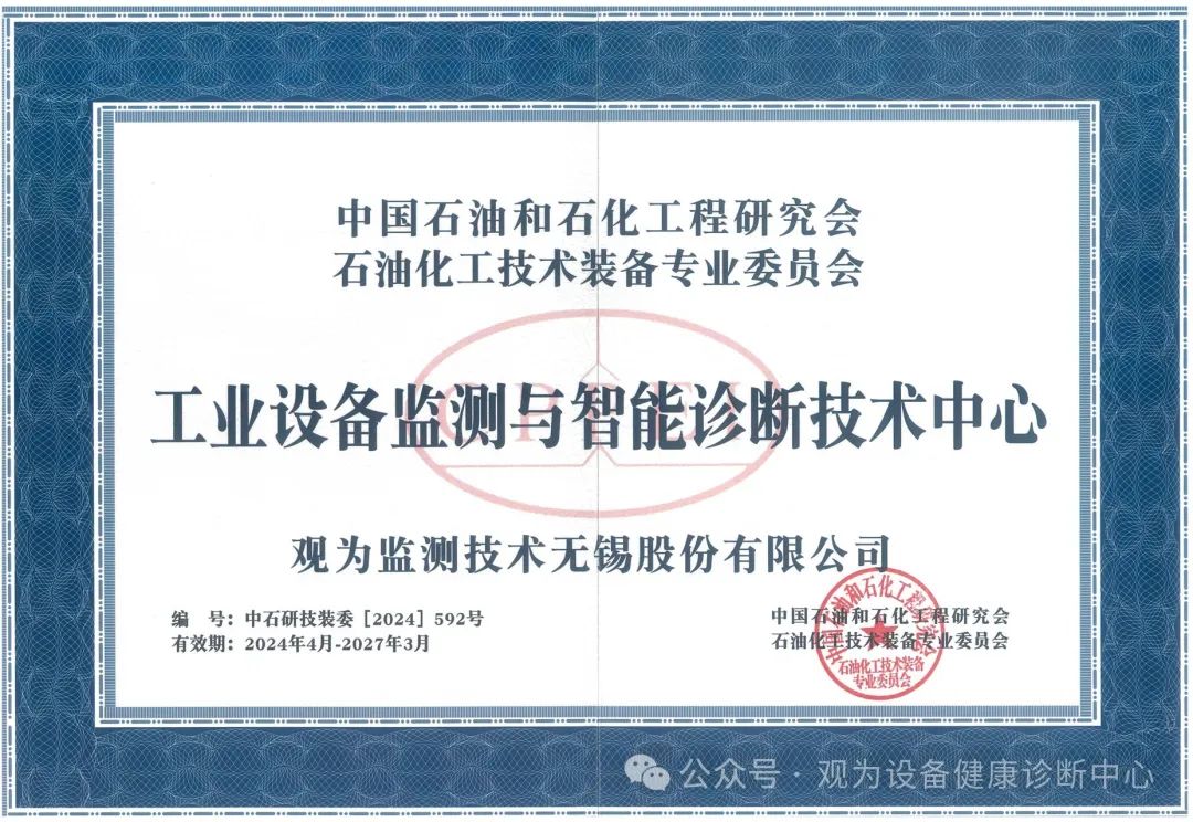 为促进我国工业设备监测与诊断技术的进步与发展,搭建能源化工行业设备监测与诊断技术交流与供需合作服务平台,由中石油、中石化、中海油牵头,经行业业主单位及专家重点推荐遴选,中国石油和石化工程研究会决定,依托观为监测技术无锡股份有限公司成立中国石油和石化工程研究会技装委工业设备监测与智能诊断技术中心。