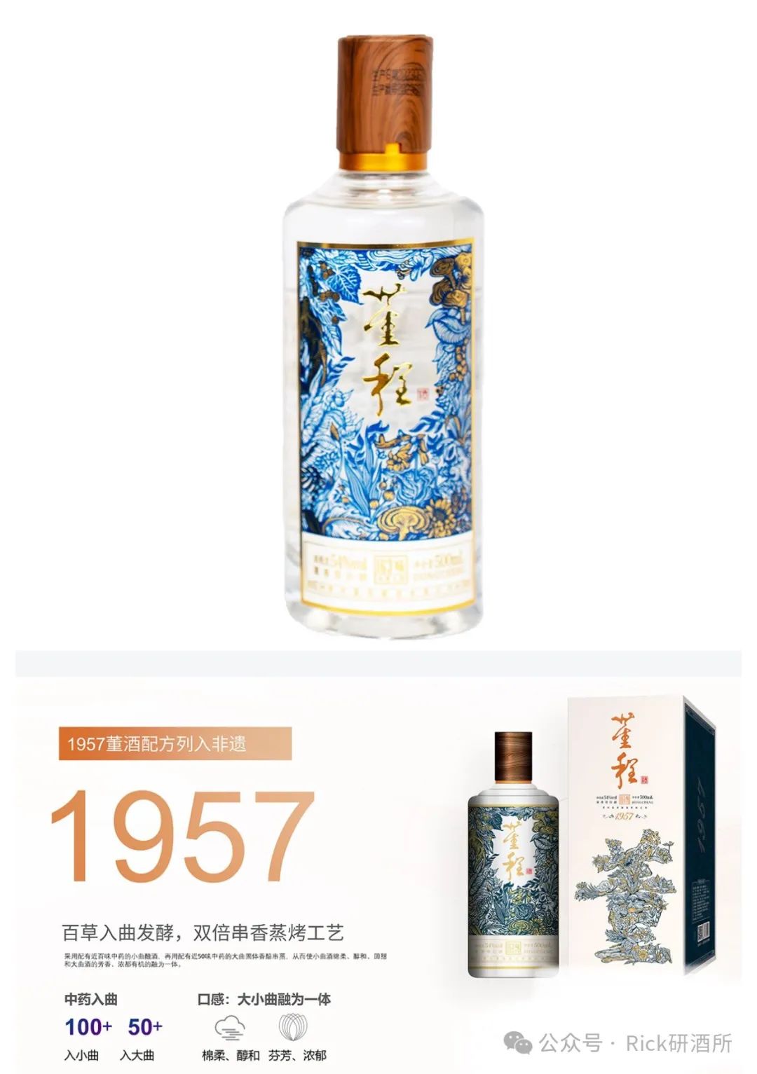 程明坤于1927年发明并始创了“百草入曲.双醅串蒸”的生产工艺,发明了董香型白酒。