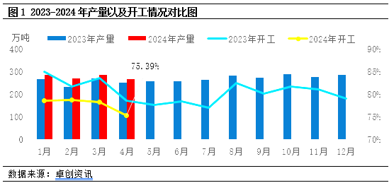 2024年国内PP生产企业开工负荷率多维持在78%左右的相对低位徘徊,而4月PP月度开工负荷率仅在75.39%,创下历史新低。