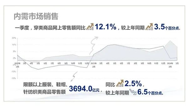 “2024年是贯彻落实商务部《关于茧丝绸行业“十四五”发展的指导意见》攻坚之年。”在5月8日举行的2024全国茧丝绸产销形势分析会暨中国丝绸协会八届三次理事会上,中国丝绸协会会长唐琳指出,当前行业正在积极推进现代化产业体系建设,加快发展新质生产力,通过“转方式、调结构、提质量、增效益”,不断巩固经济回升向好态势,才能真正实现“稳中有进”“以进促稳”。中国丝绸协会秘书长刘文全表示,2024年一季度行业开局良好,全行业规模以上企业丝产量同比下降0.88%,绸缎产量同比增长11.94%,蚕丝被产量同比增长8.87%;全国50家丝绸样本企业销售额为9.19亿元,同比增长10%;全国真丝绸商品出口总额为3.47亿美元,同比下降7.53%;全国真丝绸商品进口额为9114.06万美元,同比增长14.22%。
