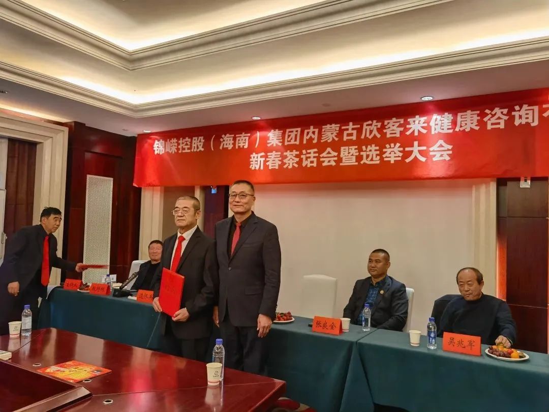 1月7日,锦嵘控股(海南)集团内蒙古欣客来健康咨询有限公司“新春茶话会暨选举大会”圆满举行。原乌审旗政协主席吴兆军、乌审旗统战部副部长兼工商联党总支书记敖特更、乌审旗工商联主席道格通巴雅尔、锦嵘控股董事长任益德、锦嵘控股办公室主任、中共锦嵘支部委员会书记张勇等领导和嘉宾参加了本次大会。