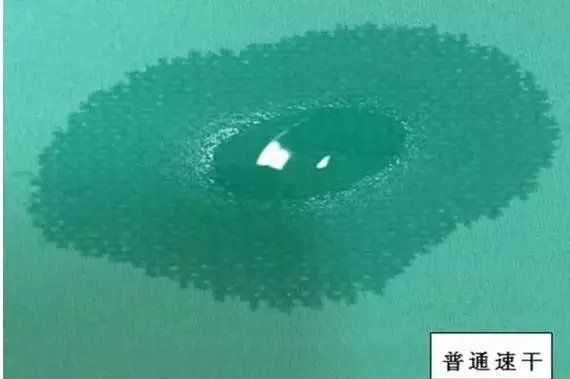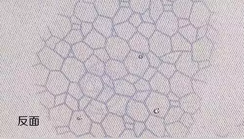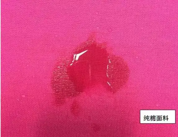将水滴入衣服表面,迅速扩散,出现图案,里面保持干爽