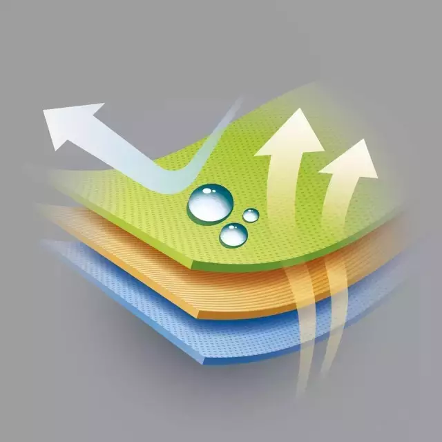 由于各种原料具有不同的吸湿性和导湿性,选择导湿性较好的原料作里面,导湿性较差的原料作外面,则汗液易从里侧传向外侧并快速蒸发。里层原料的吸湿性不能太好,否则汗液也没法充分排出。