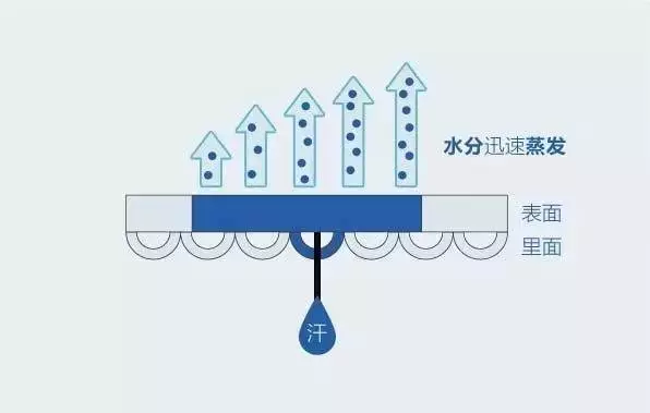 利用异型化纤原料的毛细差动效应原理,汗液从导湿能力弱的内侧向导湿能力相对较强的外侧转移,并在外侧蒸发快干。
