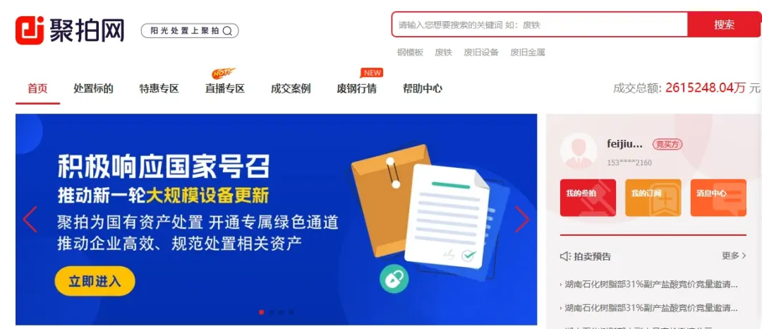 其次,新技术的应用也在提高回收行业的效率与效益。聚拍网作为一家专注于工业闲置废旧物资数字化服务的平台,敏锐地捕捉到了这一市场需求。为了积极响应国家号召,推动大规模设备更新,聚拍网专门开设了二手设备处置绿色通道。这一绿色通道不仅为企业提供了快速处置变现的渠道,还通过智能化的拍卖服务,实现了供需双方的精准匹配和高效交易。