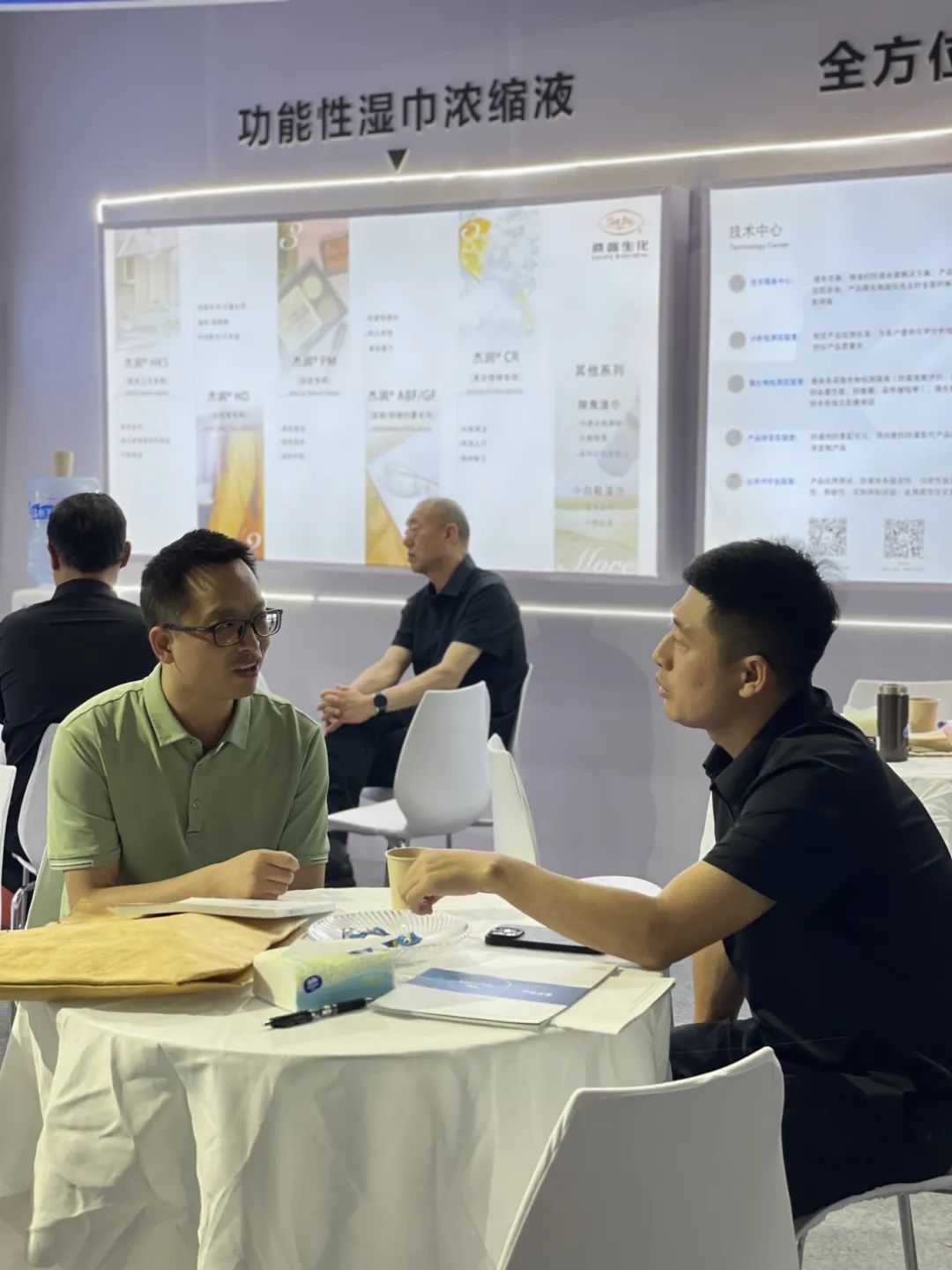 本次展会,杰润®系列主推明星产品:杰润®HKS(厨房卫生专用)、杰润®HD(羽绒服专用)、杰润®PM(卸妆专用)、杰润®ABF/GF(玻璃/眼镜防雾专用)、杰润®CR(清凉提神专用)等功能性湿巾浓缩液深受大家的欢迎。