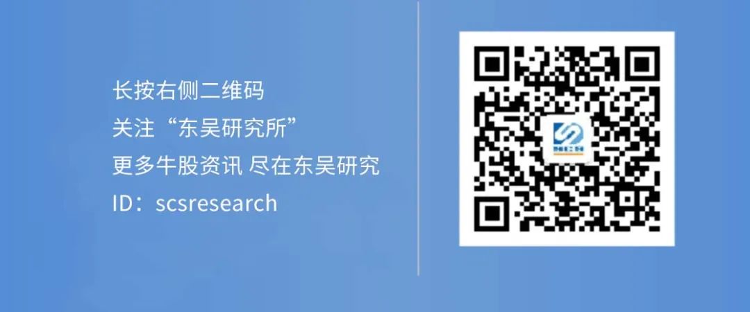 本公众号(微信号:scsresearch)为东吴证券股份有限公司(以下简称“东吴证券”)研究所依法设立,独立运营的官方订阅号。本订阅号不是东吴证券研究所的研究成果发布平台,本公众号所截内容均来自于东吴证券研究所已经正式发布的研究报告,如需了解详细的证券研究信息,请参见东吴证券研究所发布的完整报告。在任何情况下,本号所截内容不构成对任何人的投资建议,东吴证券或东吴研究所也不对任何人因使用本订阅号所截内容所引致的任何损失负任何责任。本订阅号所截内容版权仅归东吴证券研究所所有,东吴证券及东吴研究所对本订阅号保留一切法律权利。订阅人对本订阅号发布的所有内容(包括文字、图片、影像等)未经书面许可,禁止复制、转载;经授权进行复制、转载的,需注明出处为“东吴证券研究所”,且不得对本订阅号所截内容进行任何有悖原意的引用、删节或修改。