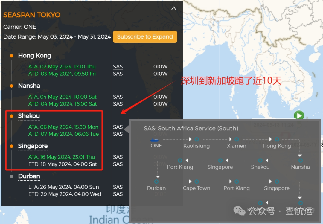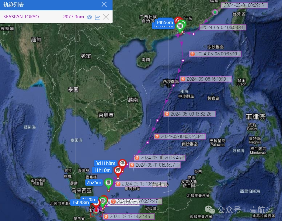 有货代反馈这艘集装箱船从深圳蛇口到新加坡港,正常四五天的航程,走出了近10天的时间,并质疑相关船公司是否存在人为制造运力恐慌的情况。