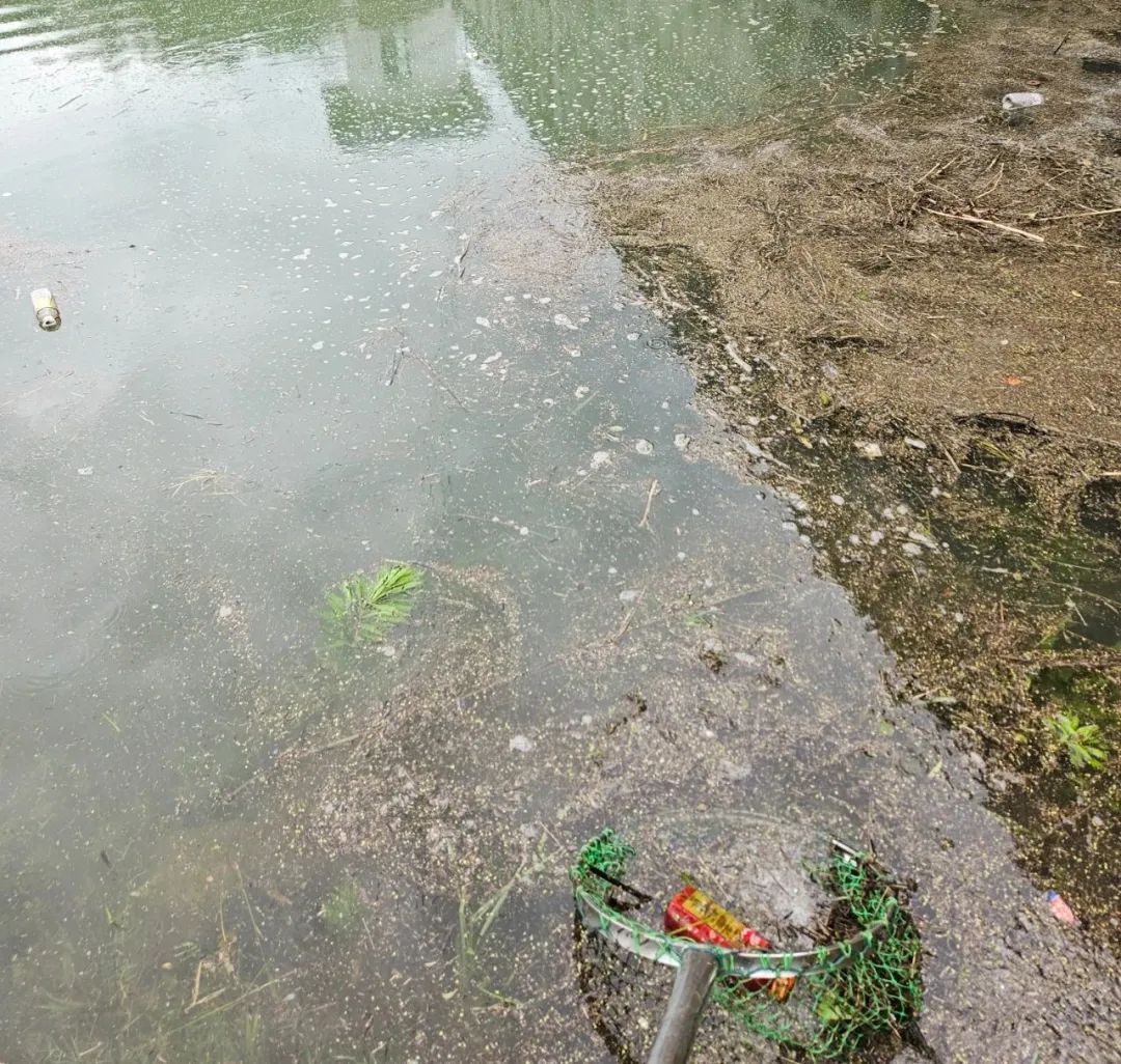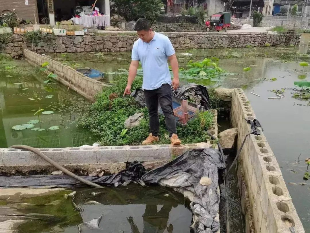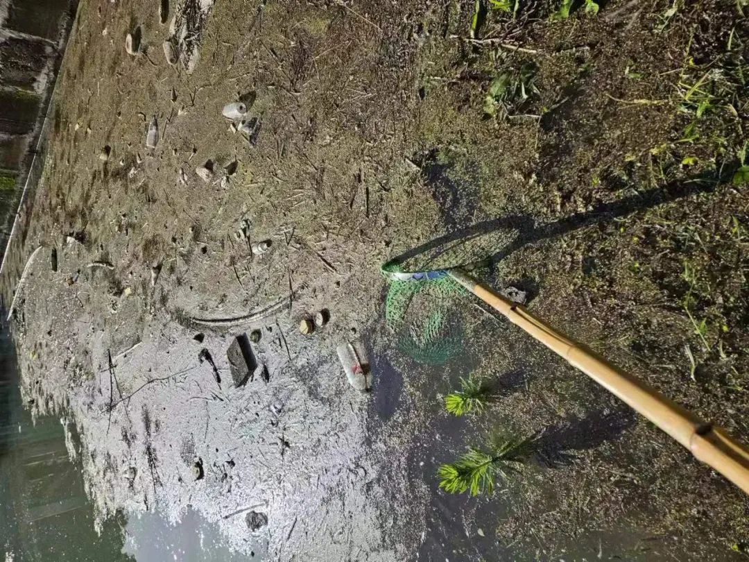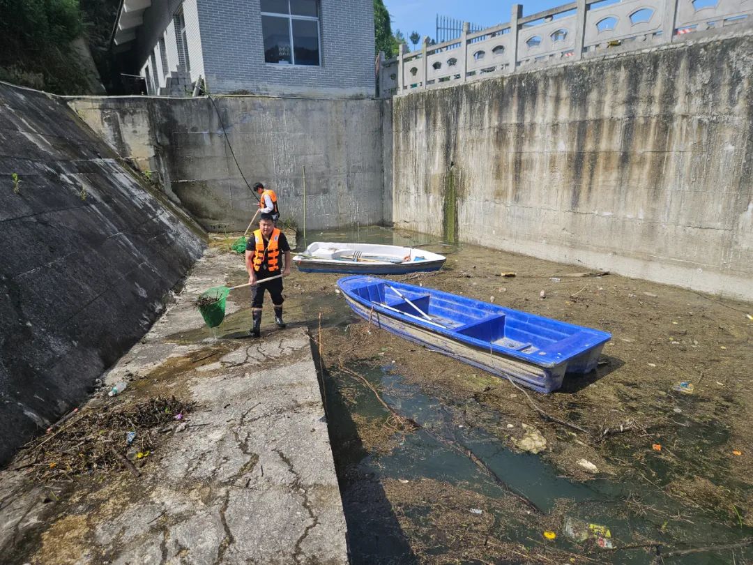 思南公司任家岭水库值班值守人员打捞水面漂浮物,切实维护了水库环境卫生。
