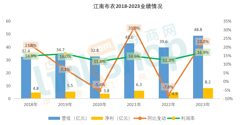 A.有20家品牌,营收及净利均实现双位数增长;特别是江南布衣、比音勒芬和达芙妮国际,营收及利润增幅都在20%以上,净利润在14%以上;此外还有安踏体育、地素时尚及中国利郎3家企业,净利润率也超过14%,并且营收及净利增幅突出。