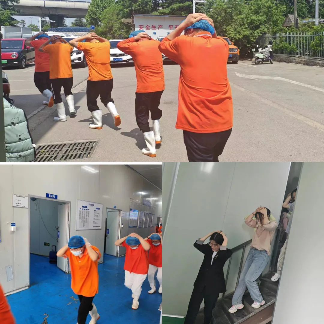 演练以突发5.0级地震、公司震感强烈为背景。随着一声尖锐的警报声,模拟地震演练正式开始。参加演练的各位员工按照演习预案各司其职、各负其责、分工合作,有序进行避险疏散、紧急救援工作。第一次警报响起,职能部门全体员工在警报响起后立即进行紧急避震,双手护着头部,躲到办公桌下或保命三角区;与此同时,万诺央厨员工听到警报响起,双手握拳护在头后、压低身体从安全通道有序撤离现场。1分钟后,第二次警报响起(地震间歇),职能部门员工双手护头,有序沿安全通道迅速撤离到紧急避难场地,演练达到了预期的效果。