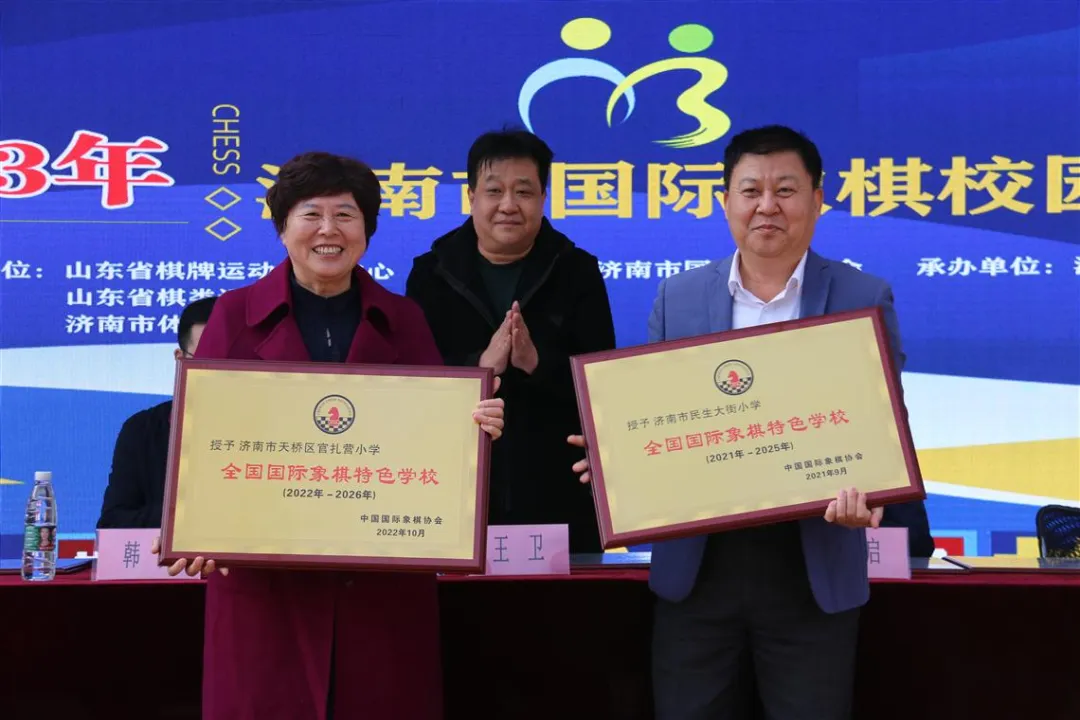 随着“全国国际象棋特色学校”“山东省国际象棋特色学校”的设立,对推动国际象棋进校园工作起到了非常重要的作用。为此,济南市国际象棋协会相继出台了《济南市国际象棋特色学校授予办法》和《济南市国际象棋人才基地校授予办法》。现在已有30余所小学和幼儿园申报。济南民生大街小学等6所学校获得《全国国际象棋特色学校》,济南市天桥区官扎营小学等8所学校获得《山东省国际象棋特色学校》。