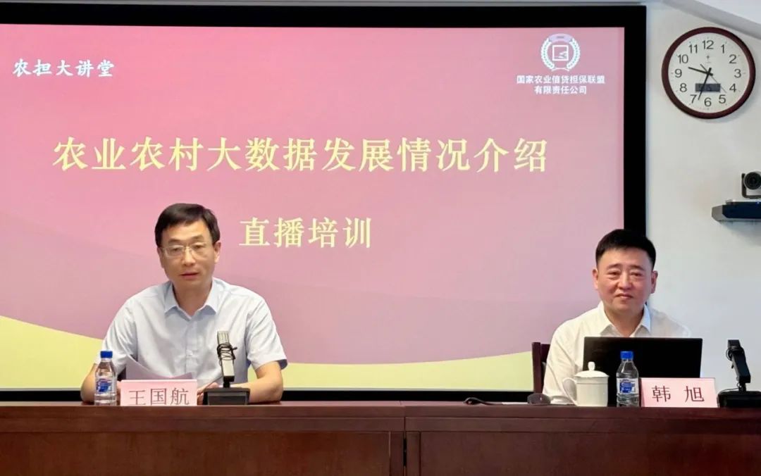 5月15日,国家农业信贷担保联盟有限责任公司(以下简称国家农担公司)在京举办“农担大讲堂”第三期农业系列专题直播培训,邀请农业农村部大数据发展中心主任韩旭就“农业农村大数据发展情况介绍”做专题讲座。国家农担公司党委副书记、副董事长、总经理王国航主持培训并作开班讲话。国家农担公司全体员工,33家省级农担公司共2388人参加培训。