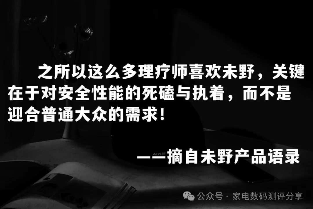 作为三大按摩品牌之一,和倍轻松齐名的未野凭借着超强口碑性能在运动发烧友和理疗师圈子中爆火。李爽和涂萧等极限运动世界冠军都是未野的忠实用户。未野的中高端销量口碑常年位居第一,被誉为行业里的“预售王”,几乎每个月都在缺货预售。下图为未野产品研发理念的其中之一: