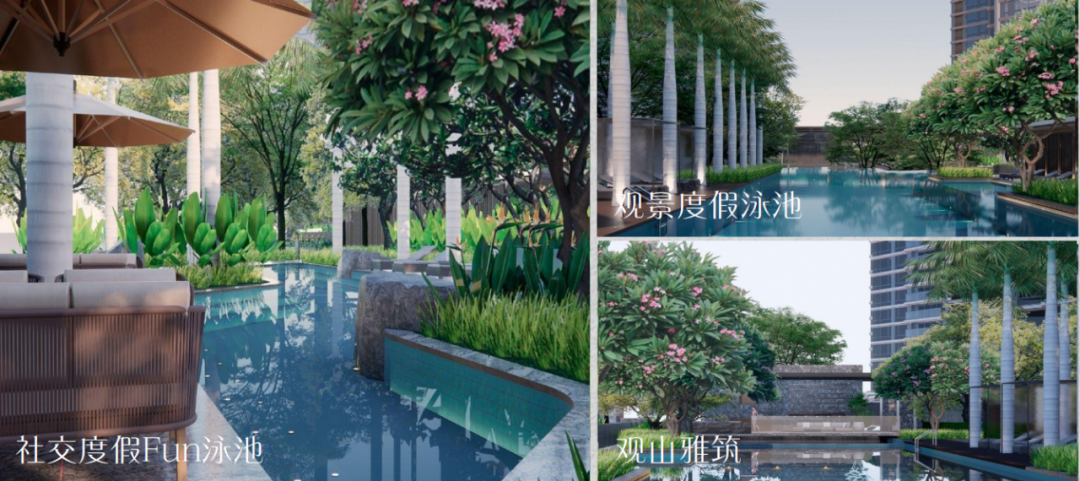 更跳出常规,罕见设置了约6米高差的悬浮无边际叠水泳池、水边漂浮卡座,更大限度与水、与景相融合,且乐趣无边。