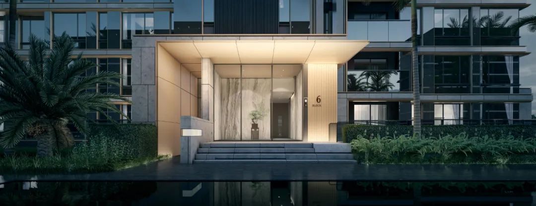 入口也是整个建筑的视觉焦点,酒店级精奢门楼细节丰富,浅灰色石材及香槟金铝板吊顶,凸显门楼质感,营造出艺术美学的视觉感受,优雅仪式归家。