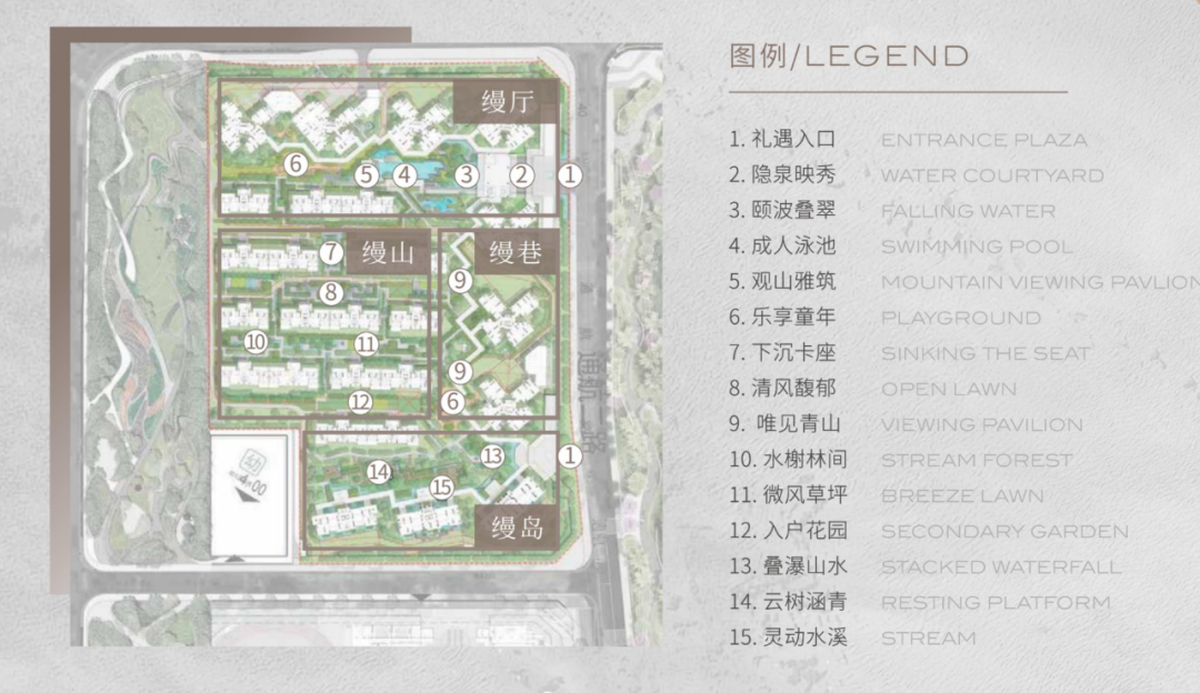 打造的用心以及对品质的坚持,被一以贯之到了园林设计中,园林设计上也十分“重”用材,比如Prada绿大理石、蓝色多瑙河大理石、福鼎黑花岗岩等,都是千挑万选的昂贵材料。