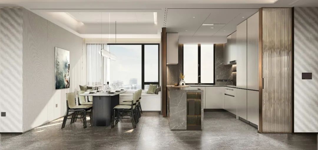 其次,超60㎡LDKB一体化大方厅,将巨幅客厅、餐厅、厨房、阳台这4个日常公共使用频率超高的空间融为一体,形成一个更为敞阔的活动领域,不仅提升家庭间的互动性,更能满足多元生活场景。