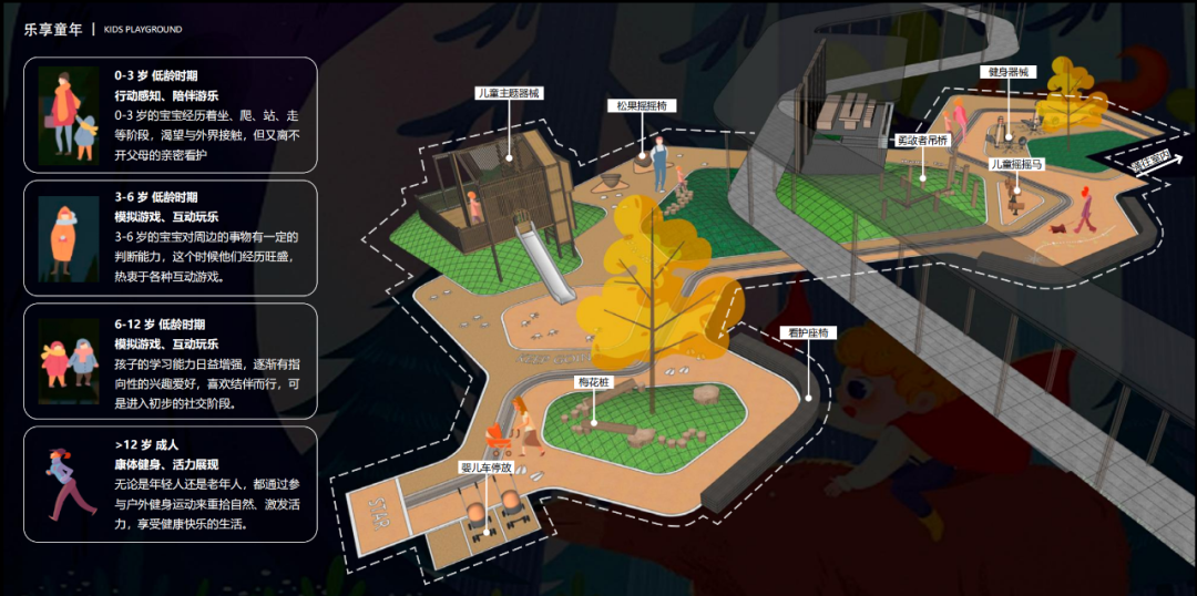全龄化社交活力共享社区,满足多样化需求,原木材质儿童主题休闲区、健行步道等,以更亲自然生态的形式融入环境,让幸福漫延到每一个角落。