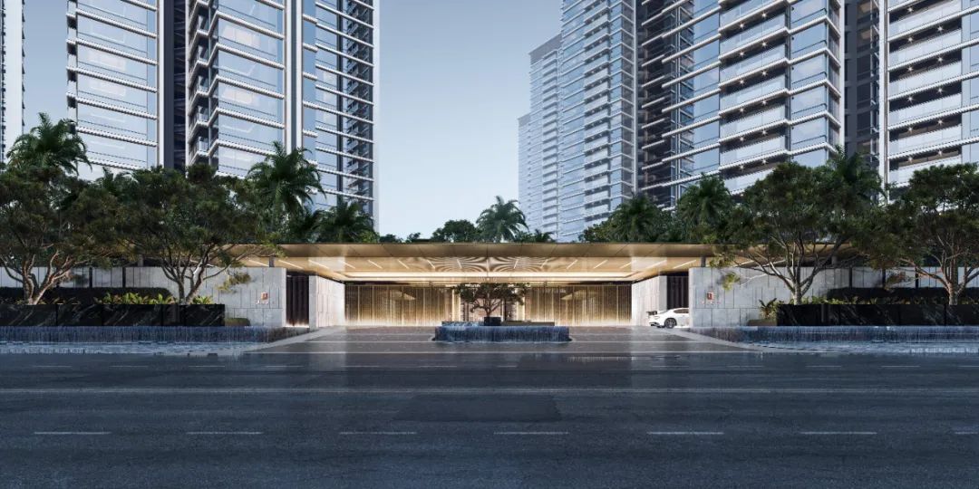 屋顶恰到好处点缀出建筑的层次感。高层住宅金色塔冠,带来超强的识别度,远远一看就能认出来,既形成「金顶豪宅」的认知,又创造出了城市里的「美学灯塔」。
