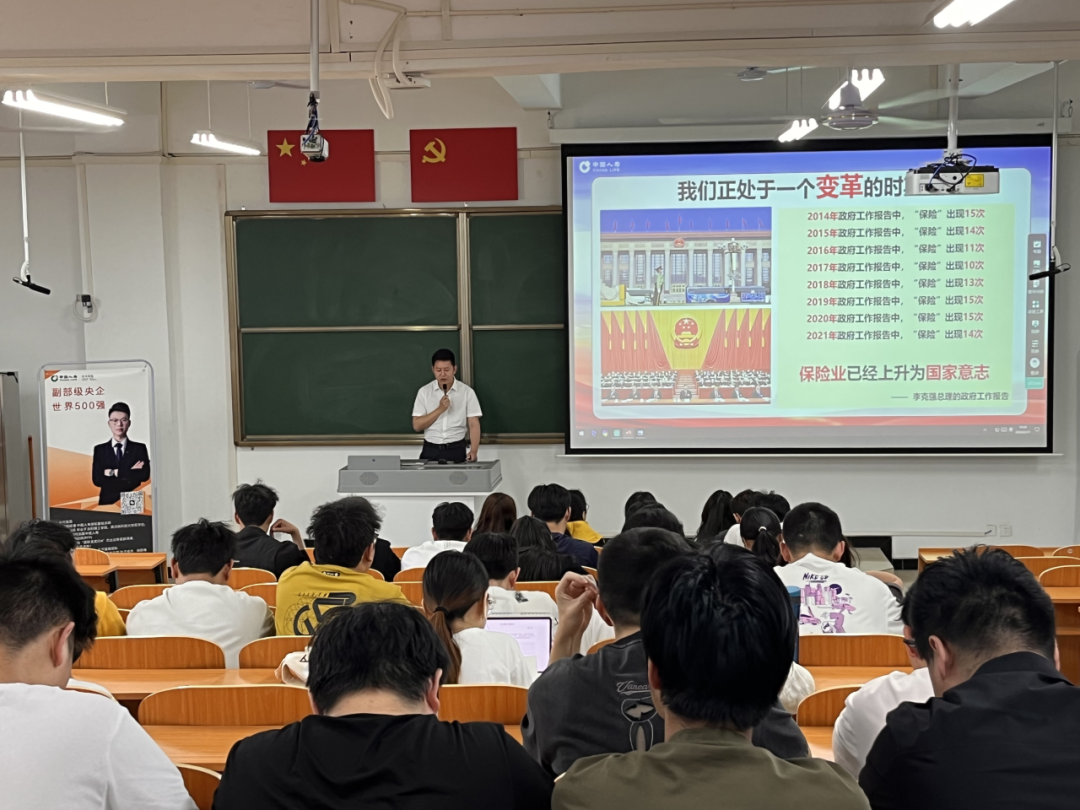 宣讲会上,主讲人对中国人寿保险公司的发展历程、企业文化和业务板块进行了详细的介绍。主讲人结合自身丰富的行业经验,为学生们解析了保险行业的发展趋势和就业前景。主讲人不仅分享了自身的工作历程以及岗位认识,还对同学们的未来职业生涯规划提出了宝贵的意见,同时耐心细致地解答学生提出的各项问题,主讲人与学生们进行了深入的互动交流。让同学对该公司有了更为清晰的认识,为个人的就业方向找到了具有针对性的指引。